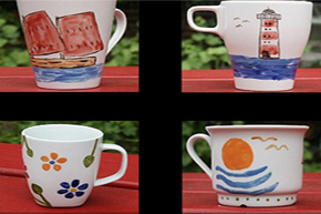 Porzellanmalfarben könnt Ihr jedes weißglasierte Porzellan (Becher,